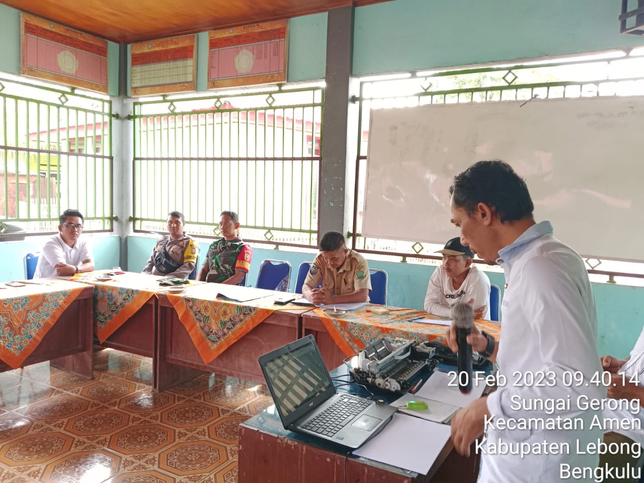 Kegiatan dilaksanakan di Balai Desa Sungai Gerong dan dihadiri Kades Sungai Gerong, Bhabinkamtibmas, Babinsa, BPD Desa Sungai Gerong, perangkat desa dan pendamping desa.