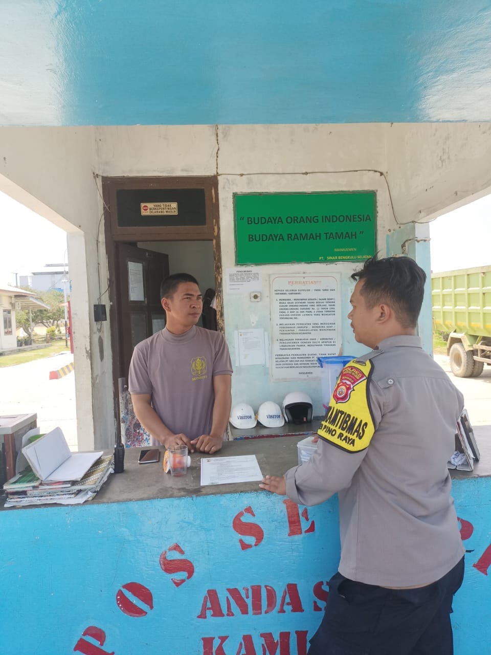 Bhabinkamtibmas Polsek Pino Raya Sambangi Security PT SBS Nanjungan, Sampaikan Imbauan Kamtibmas