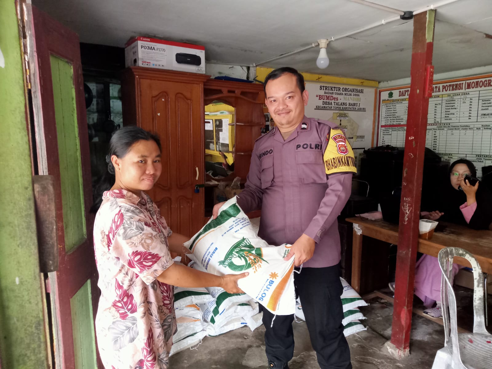 Lebong - Pada Senin (19/6/2023), Bhabinkamtibmas Polsek Rimbo Pengadang, Briptu Prindo Ronaldi, menghadiri kegiatan pembagian beras dari Badan Pangan Nasional melalui Perum Bulog di Desa Talang Baru I Kecamatan Topos, Kabupaten Lebong.