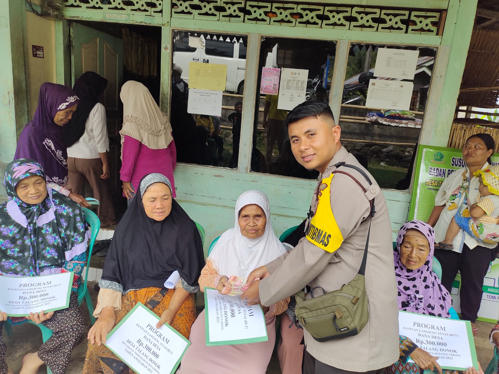 Lebong - Bhabinkamtibmas Polsek Rimbo Pengadang, Polres Lebong Polda Bengkulu Brigpol Anton, menghadiri kegiatan pembagian bantuan langsung tunai (BLT) yang bersumber dari dana desa (DD) di Desa Talang Donok Kecamatan Topos Kabupaten Lebong, Rabu (19/4/2023).
