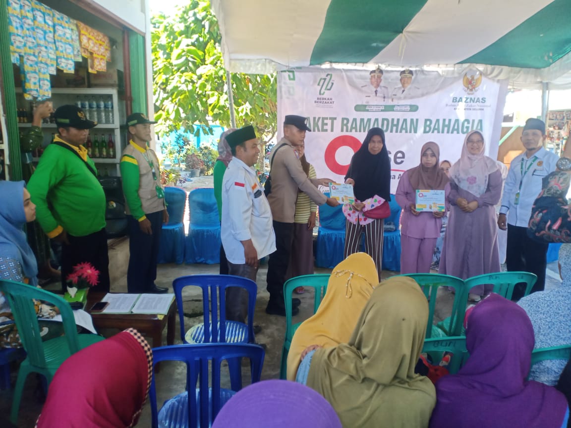 Seluma - Bhabinkamtibmas Polsek Semidang Alas Maras (SAM) Polres Seluma Polda Bengkulu Bripka Enggus Sastro dan Briptu Ferry Kurniawan menghadiri pembagian Paket Ramadan Bahagia oleh Baznas Kabupaten Seluma di Desa Padang Peri Kecamatan Semidang Alas Maras Kabupaten Seluma, Kamis (13/4/2023).