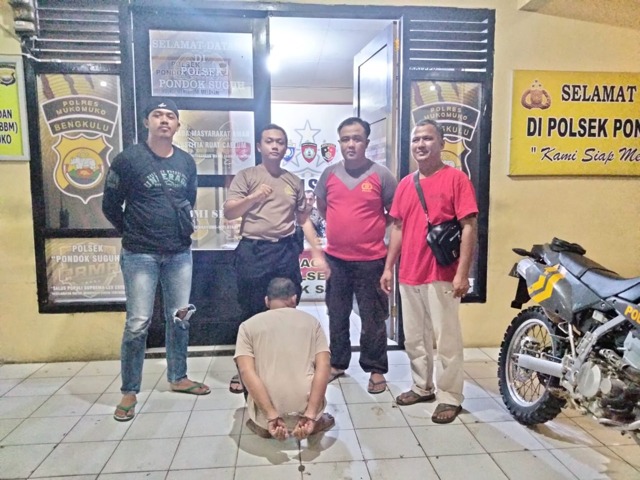 Pihak Polsek Pondok Suguh yang menerima laporan dari pihak korban segera melakukan pencarian pelaku, dan akhirnya sekitar pukul 10 malam (9/8/23) pelaku berhasil disergap Personel Reskrim Polsek Pondok Suguh dirumahnya tanpa perlawanan.