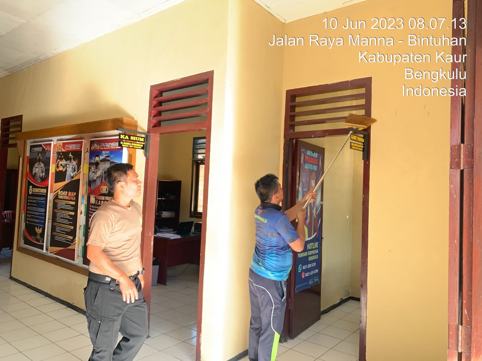 Kegiatan Manajemen kebersihan Mako di Pimpin oleh Kanit Provos Polsek Kaur Tengah Bripka Mardianto dan diikuti oleh anggota personel Polsek Kaur Tengah.