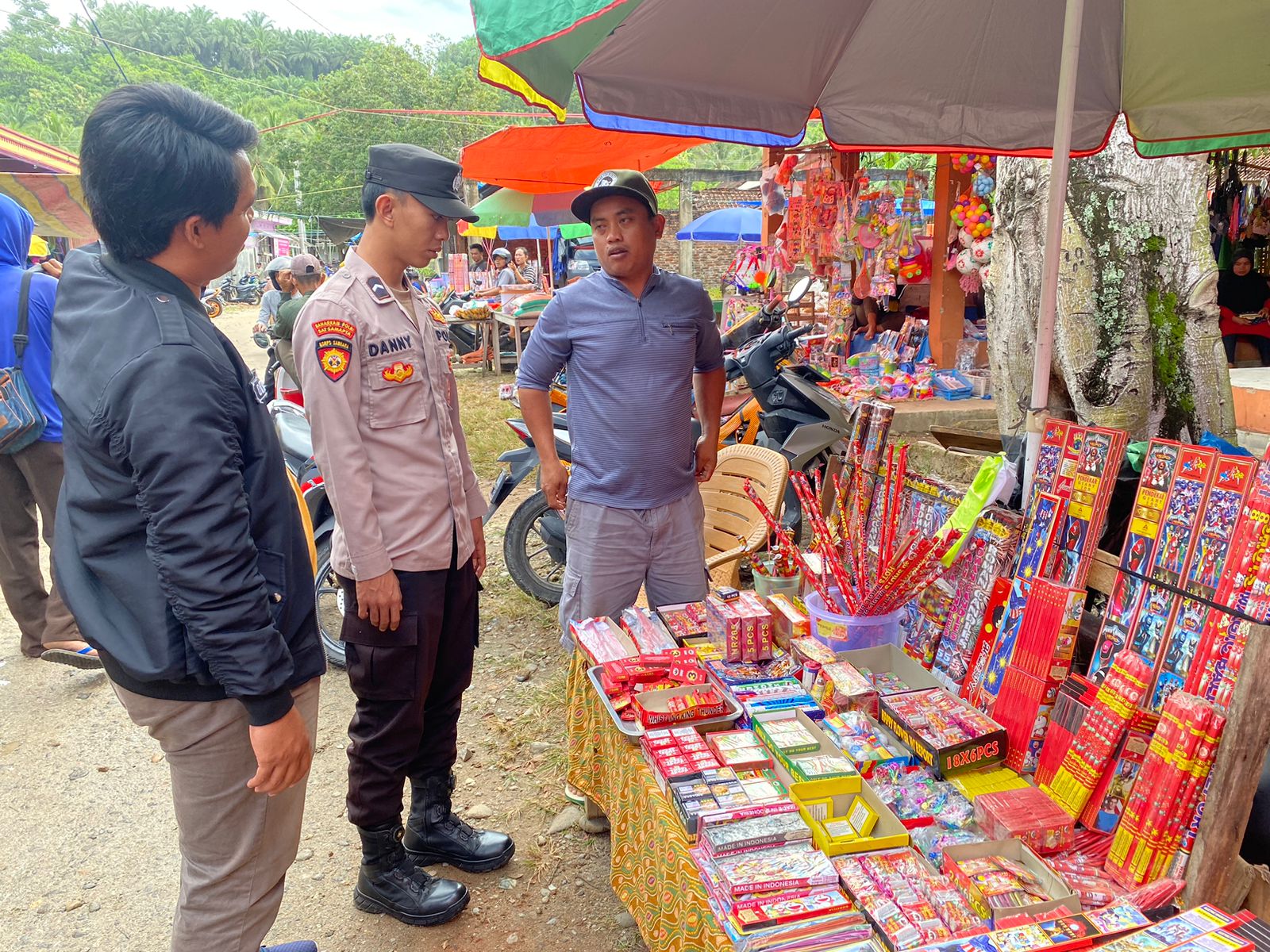 Setiba di pasar, personel langsung melakukan pengecekan ke pedagang petasan dan melarang mereka menjualnya, terlebih kepada anak-anak karena dapat membahayakan.