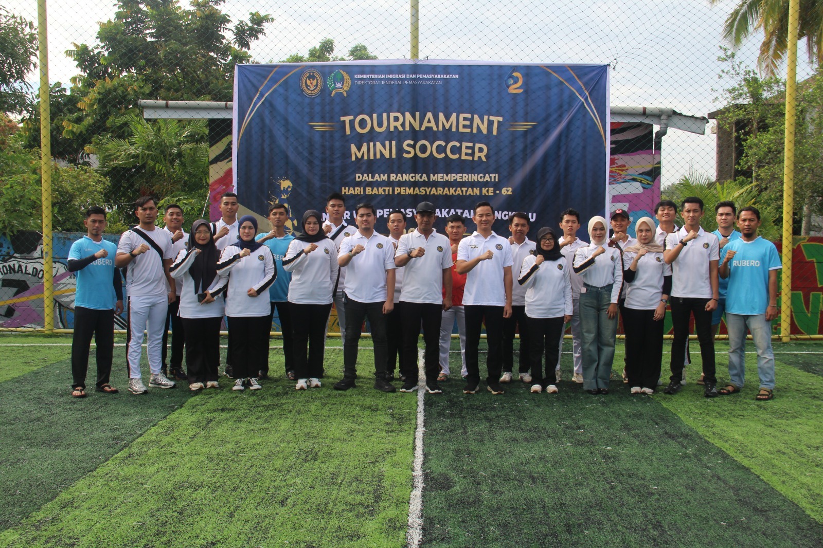 Bengkulu – Dalam rangka memperingati Hari Bakti Pemasyarakatan ke-62, jajaran Unit Pelaksana Teknis (UPT) Pemasyarakatan se-Provinsi Bengkulu menggelar turnamen mini soccer antar UPT yang berlangsung meriah dan penuh semangat kebersamaan. Kegiatan ini turut diikuti oleh Rumah Tahanan Negara Kelas IIB Bengkulu sebagai salah satu peserta aktif dalam rangkaian peringatan tersebut.