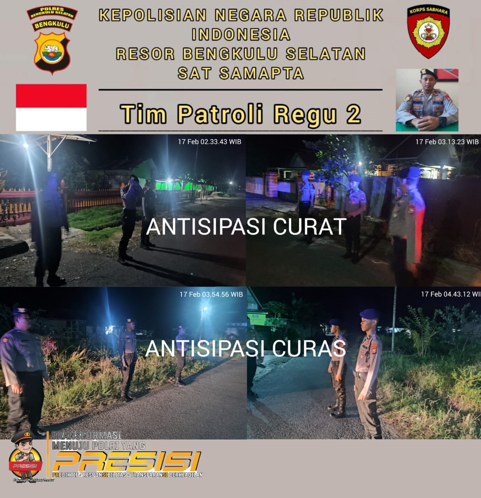 Bengkulu Selatan, Dutawarta.com – Sat Samapta Polres Bengkulu Selatan Polda Bengkulu melaksanakan Patroli Dialogis dan antisipasi gangguan Kamtibmas diwilayah hukum Polres Bengkulu Selatan Kamis (16/02/2023) malam.