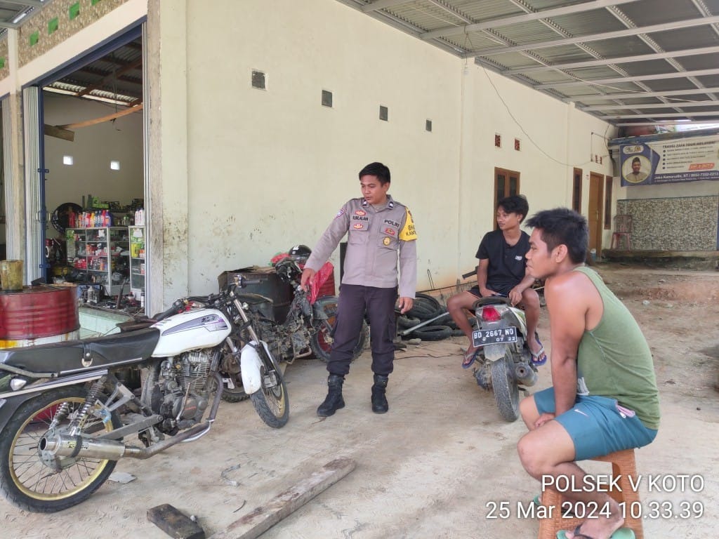 Dalam pelaksanaan tersebut, Bhabinkamtibmas Polsek V Koto Briptu Ronald Silalahi turun ke lapangan dengan penuh kewaspadaan. Ia memantau berbagai titik rawan kejahatan dan menjaga keamanan serta ketertiban masyarakat di wilayah tersebut.