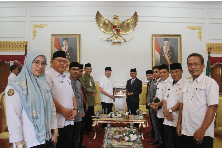 Dutawarta.com - Gubernur Bengkulu Rohidin Mersyah menerima kunjungan Pejabat Pusat Rakyat Ahli Parlimen P133 Tampin, Negeri Sembilan Malaysia Datuk Hasan bin Bahrom beserta rombongan di Balai Raya Semarak Bengkulu, Rabu (8/6/2022).