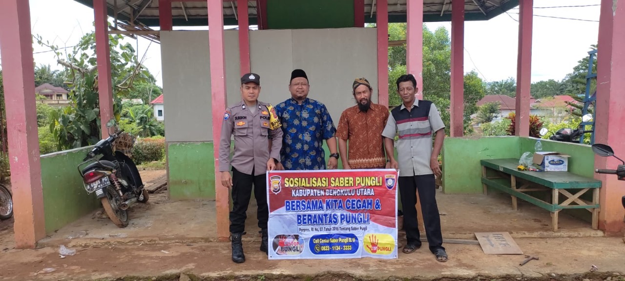 Bengkulu Utara - Polsek Padang Jaya Polres Bengkulu Utara Polda Bengkulu melakukan imbauan Kamtibmas kepada masyarakat untuk mensosialisasikan tentang Sapu Bersih Pungutan Liar (Saber Pungli) di Kecamatan Padang Jaya, Kabupaten Bengkulu Utara, Provinsi Bengkulu, Kamis (04/01/2024).