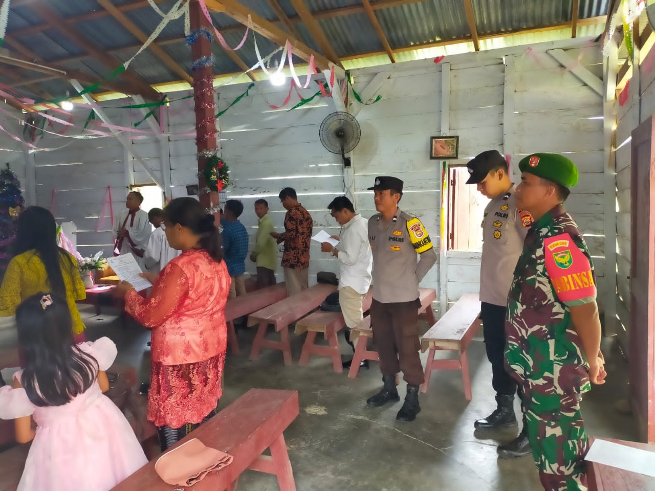Kaur - Personel Polsek Kaur Selatan Polres Kaur Polda Bengkulu,  Aipda M. Adrin berserta Bripka Nur Ahmad Yani, Briptu Alan Bagaskara, Bripda Iqbal, dan anggota TNI 2 melaksanakan Pengamanan Ibadah Gereja Umat Kristiani di Pospel HKBP Pondok Pusaka di Desa Padang Petron Kec. Kaur Selatan  Kab. Kaur, Pada hari Selasa (26/12/2023), Pukul 11.00 Wib s/d Selesai.