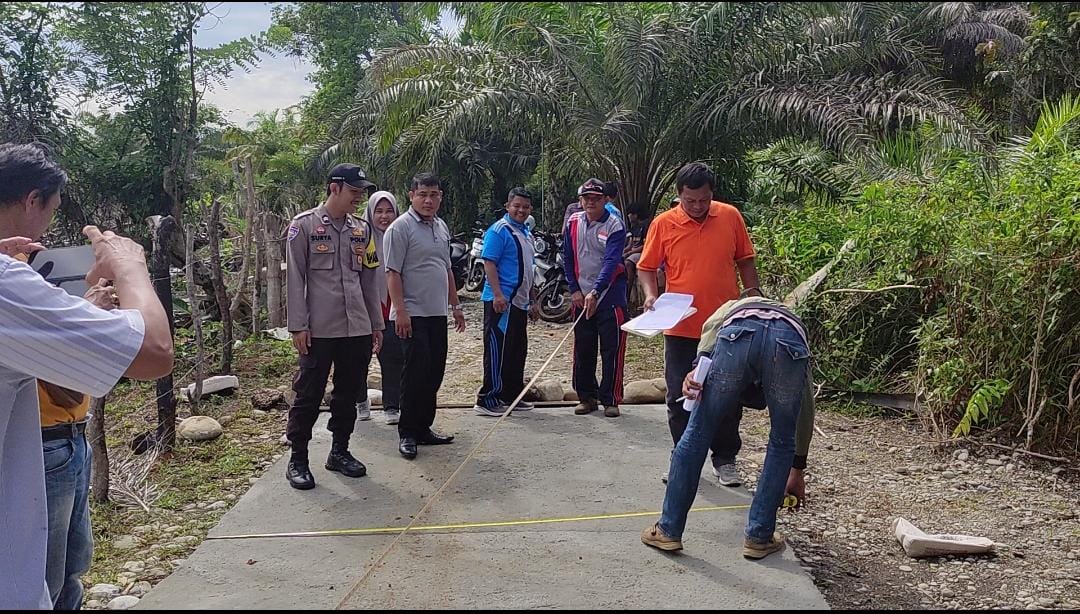 Bengkulu Utara - Bhabinkamtibmas Polsek Air Besi Polres Bengkulu Utara Polda Bengkulu menghadiri, tahapan sertifikasi terhadap hasil Pembangunan fisik Jalan Usaha Tani (JUT) Desa Tebing Kandang dilaksanakan oleh Pemerintah Desa Tebing Kandang, Kecamatan Air Napal Kabupaten Bengkulu Utara, Jumat (09/06/2023).