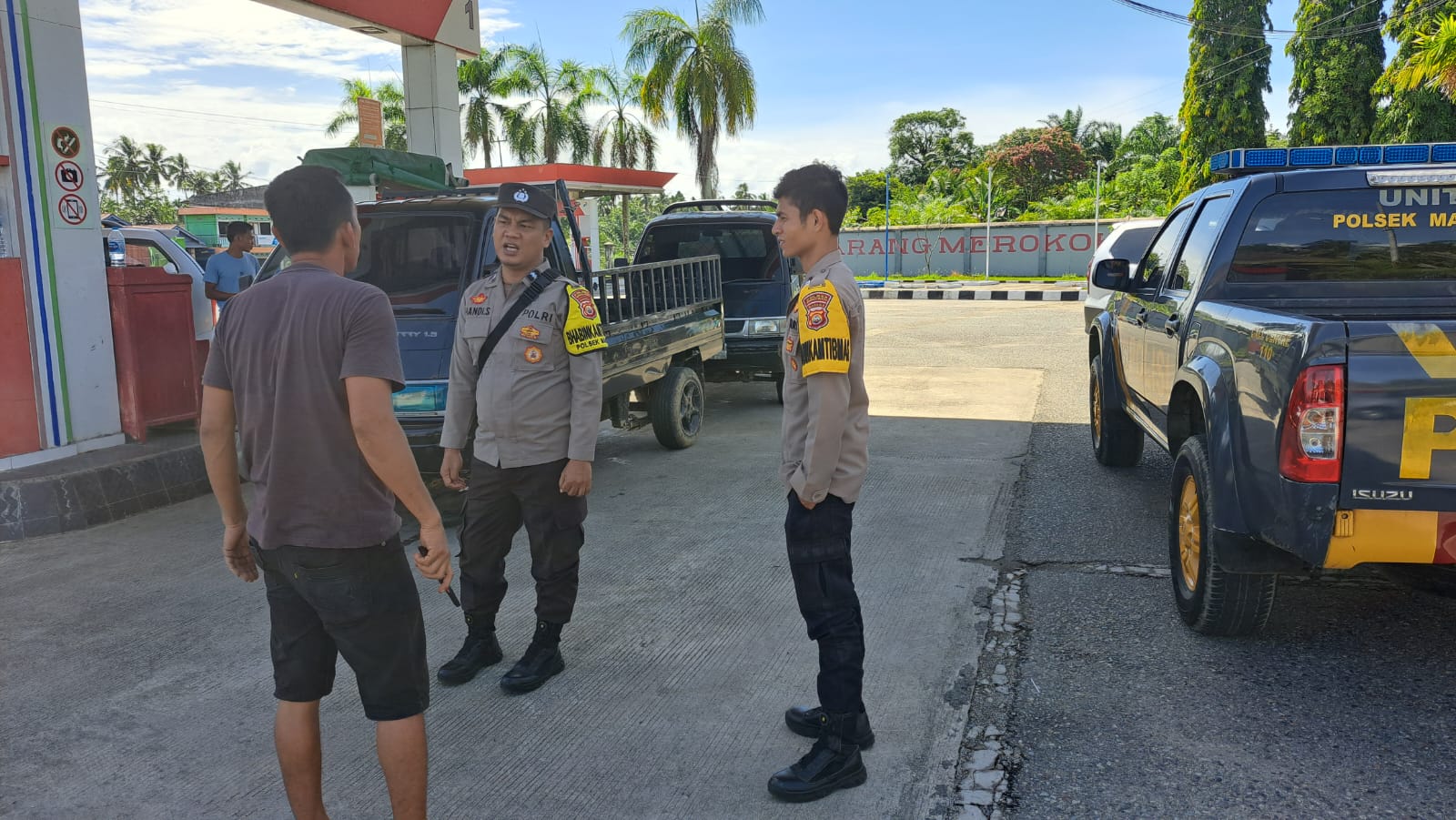 Bhabinkamtibmas Polsek Kota Manna Sambangi SPBU Tanjung Raman Monitoring Ketersedian BBM