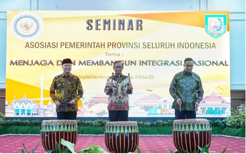 Dutawarta.com - Provinsi Bengkulu menjadi tuan rumah Seminar Asosiasi Pemerintah Provinsi Seluruh Indonesia (APPSI) 2022. Menteri Koordinator Bidang Politik, Hukum, dan Keamanan (Menko Polhukam) Mahfud MD membuka seminar APPSI mengangkat tema "Menjaga dan Membangun Integrasi Nasional" di Balai Raya Semarak, Minggu (19/7/2022).