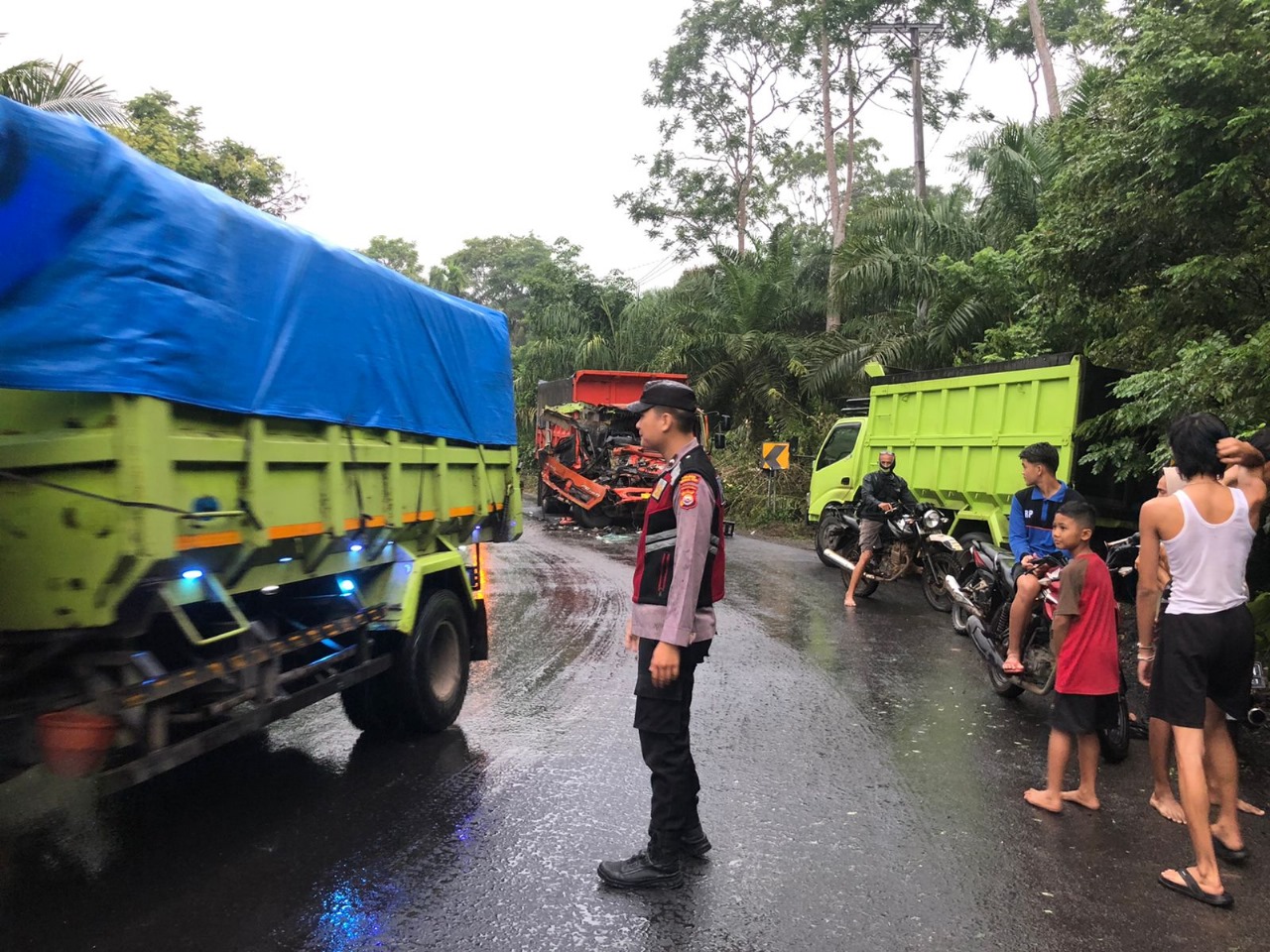 Saat di konfirmasi oleh media, truk lohan warna orange di kemudikan oleh KUSDIONO, 43 tahun warga Kota Bengkulu mengalami ringsek di bagian depan dan sopirnya memgalami patah kaki kanan, sedangkan sopir Hino berwarna hijau tidak mengalami luka luka. Ungkap Briptu David.