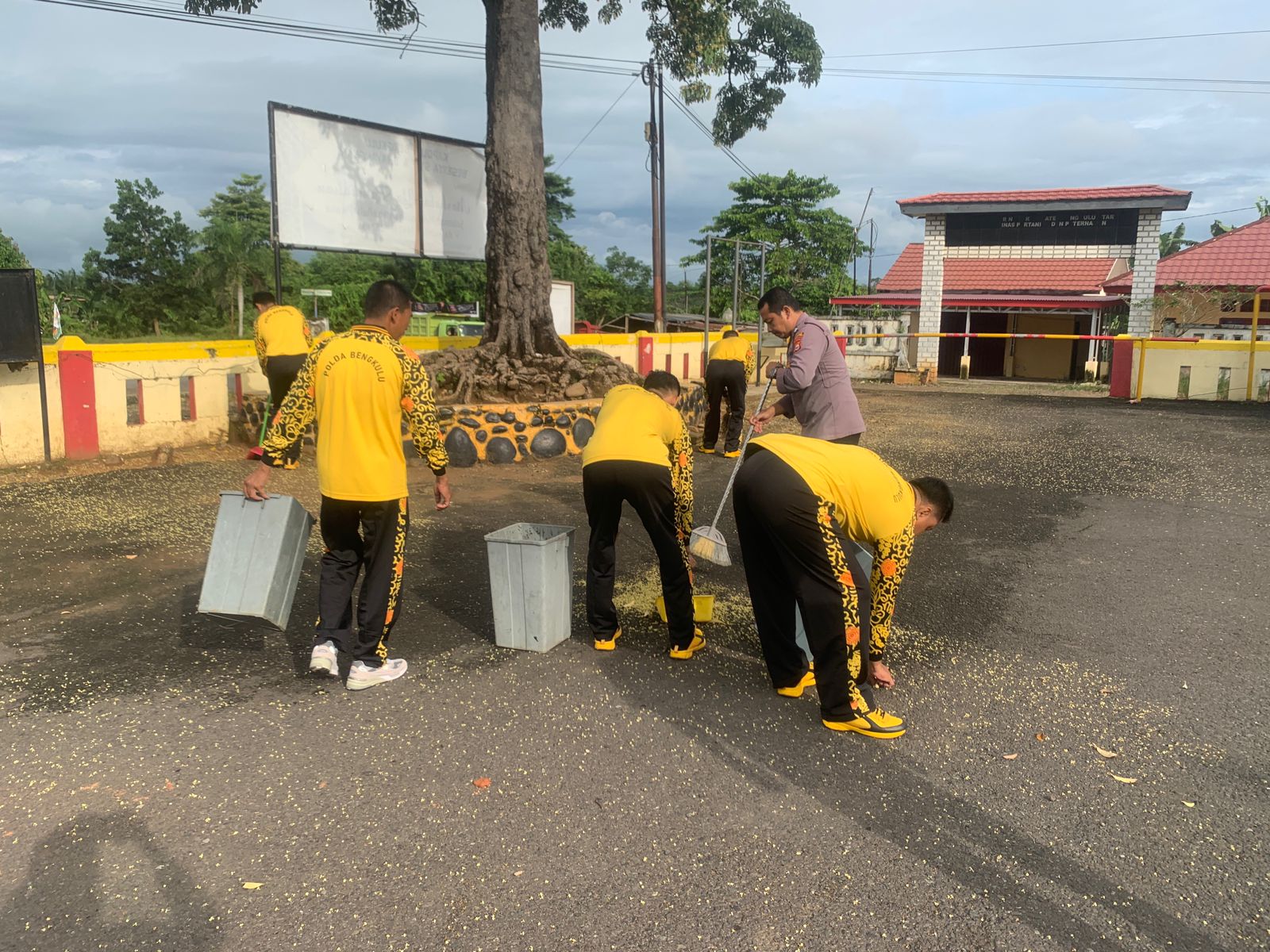 Dengan Giat Jumat Bersih, Kapolsek Ketahun Pimpin Kerja Bakti Di Lingkungan Mako Polsek