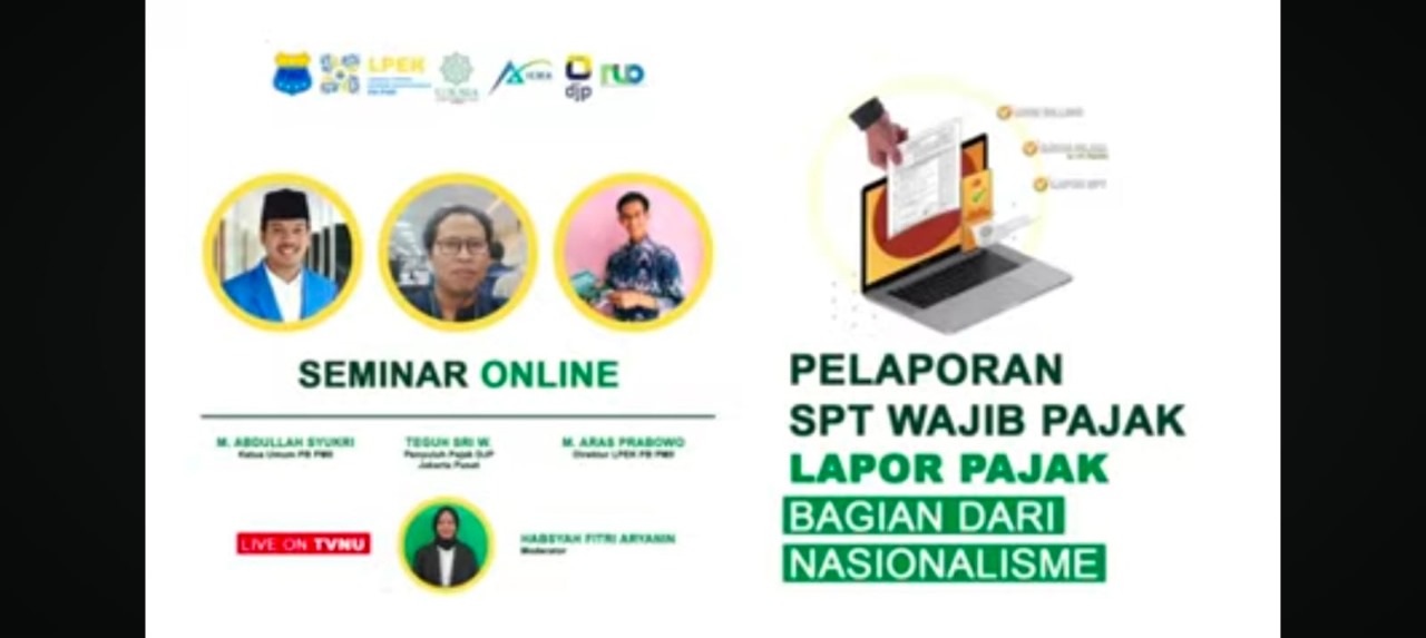 Jakarta - Lembaga Profesi Ekonomi dan Keuangan (LPEK) Pengurus Besar Pergerakan Mahasiswa Islam Indonesia (PB PMII) bekerjasama dengan Program Studi Akuntansi Universitas Nahdlatul Ulama Indonesia (UNUSIA) dan Nasaruddin Umar Office (NUO) berusaha untuk ikut bersama Negara dalam peningkatan kepatuhan Wajib Pajak dengan sosialisasi pelaporan SPT Tahunan Wajib Pajak.