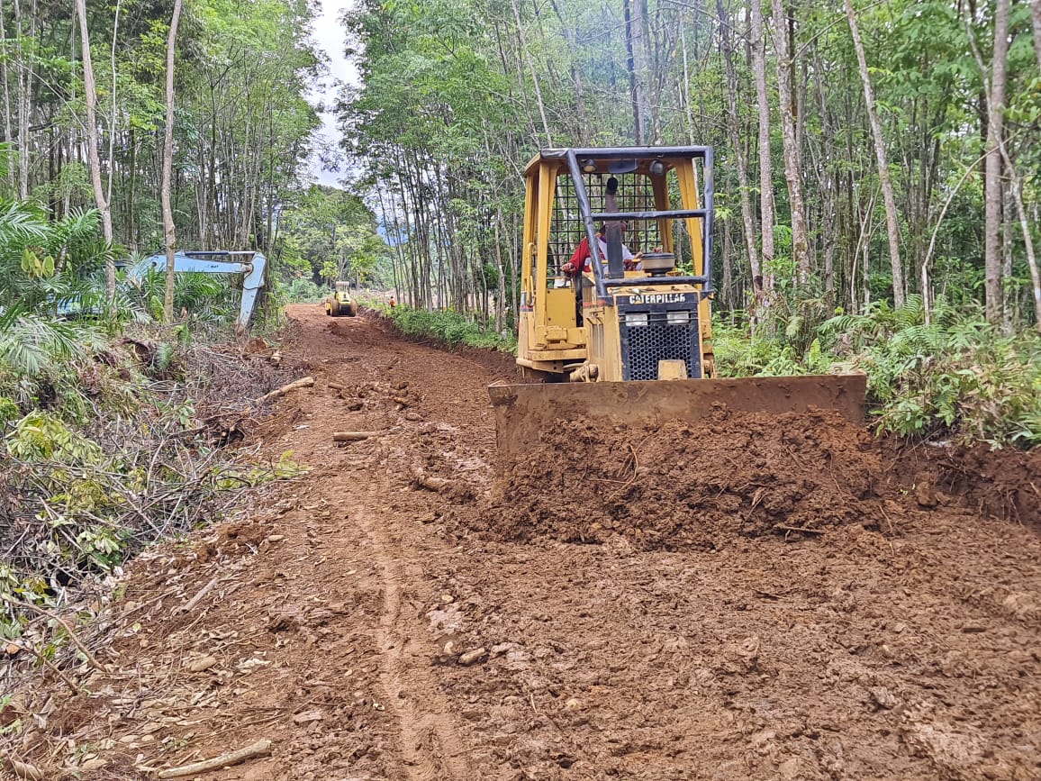 Meski kondisi medan berat usai diguyur hujan, semangat para prajurit TNI bersama masyarakat tidak surut. Lumpur yang menutupi badan jalan justru menjadi tantangan tersendiri bagi Satgas. Dengan bantuan alat berat dozer, proses pembersihan lumpur, perataan tanah, dan pembentukan badan jalan terus dilakukan agar akses transportasi bahan material tetap lancar.