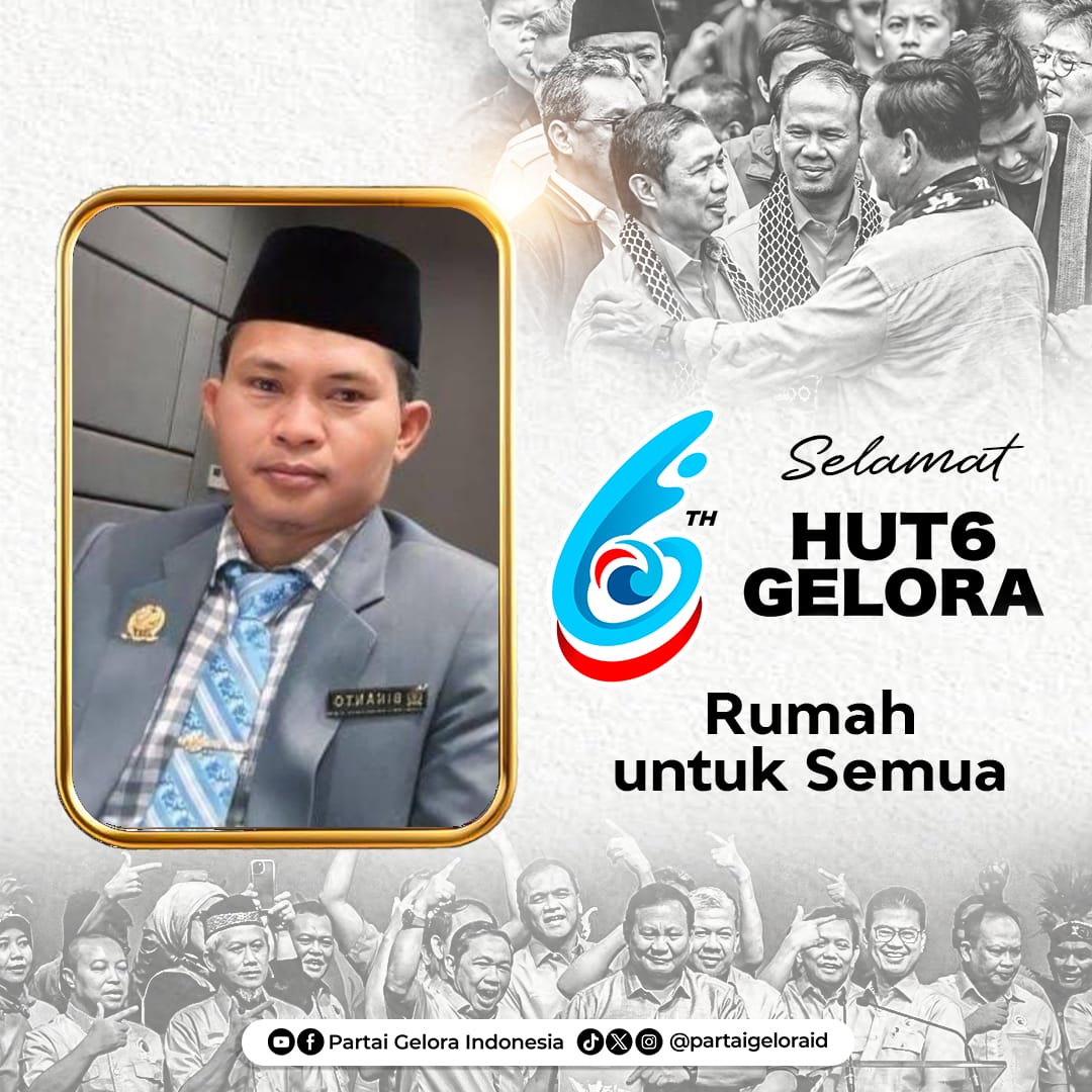 Seluma - Hari Ulang Tahun (HUT) ke-6 Partai Gelombang Rakyat (Gelora) Indonesia, banjir ucapan dari anggota Dewan Perwakilan Rakyat Daerah (DPRD) Kabupaten Seluma, Selasa (28/10/2025). Anggota DPRD Kabupaten Seluma dari Partai Gerindra dan PAN mengucapkan selamat HUT ke-6 Partai Gelora kepada Anggota DPRD Kabupaten Seluma dari Partai Gelora yaitu Binanto, S.Pd.i.