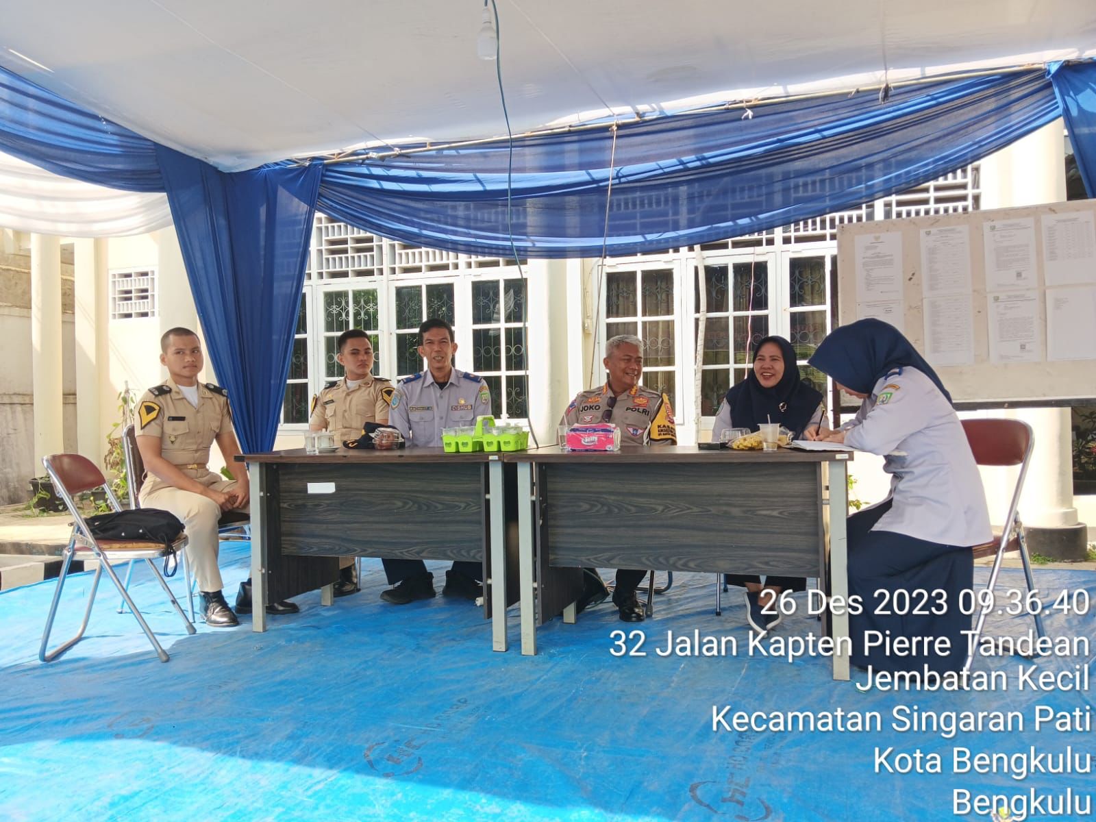 Bengkulu - Direktur Lalu Lintas (Dir Lantas) Polda Bengkulu Kombes Pol H. Joko Suprayitno, melakukan pemantauan langsung di Posko Pemantauan dan Pengawasan Transportasi yang didirikan di depan Kantor Dinas Perhubungan Provinsi Bengkulu. Kegiatan ini dilaksanakan dalam rangka mengawasi kelancaran arus lalu lintas selama periode Natal 2023 dan menyambut Tahun Baru 2024, hari Selasa (26/12/23).