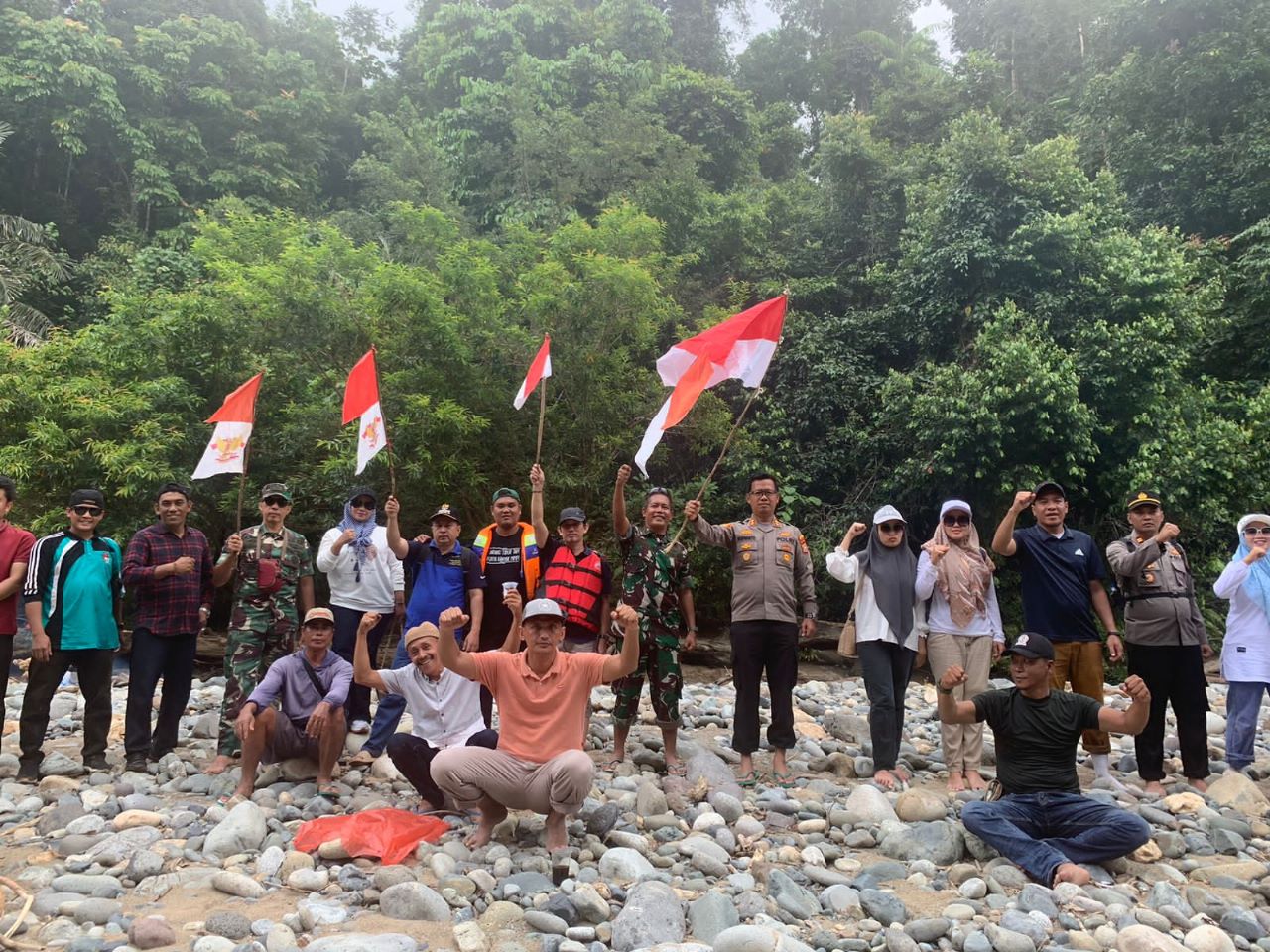 Jelajah Alam, Polres Mukomuko FKPD dan Masyarakat Malin Deman Kibarkan Bendera Merah Putih Bersama
