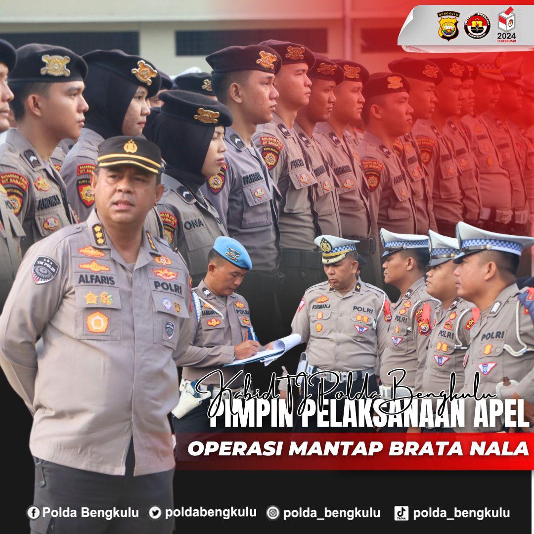 Bengkulu - Kabid TIK Polda Bengkulu Kombes Pol Alfaris Pattiwael, S.H., S.I.K. memimpin langsung pelaksanaan Apel Personil Operasi Mantap Brata Nala 2023 Polda Bengkulu di Lapangan Rekonfu, Senin (11/12/23) pagi.