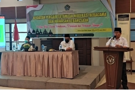 Hal ini diungkapkan Kakanwil Kemenag Dr H Zahdi Taher, M.HI, ketika membuka acara Pengarusutamaan Moderasi Beragama Tahun 2021. Di Hotel Nala Sea Side, Kota Bengkulu, Selasa (22/6/2021).