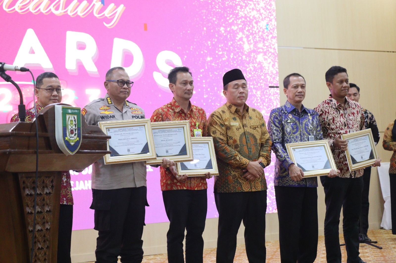Setelah penyampaian laporan,  acara dilanjutkan dengan penyerahan piagam penghargaan. Kanwil Kemenkumham Bengkulu menerima penghargaan sebagai Satuan Kerja dengan Kualitas Laporan UAPPA-W Tipe Sedang Terbaik Lingkup Kanwil Direktorat Jenderal Perbendaharaan Provinsi Bengkulu dalam acara Treasury Awards 2023. Piagam diserahkan langsung oleh Kepala Kanwil DJPB (Bayu Andy Prasetya) kepada Kakanwil Kemenkumham Bengkulu (Santosa). Pemberian apresiasi atas kinerja pengelolaan keuangan ini sangat diperlukan dalam rangka peningkatan kinerja pelaksanaan anggaran. Tentunya prestasi ini sangat membanggakan Kanwil Kementerian Hukum dan HAM Bengkulu dan patut dipertahankan pada tahun-tahun berikutnya.