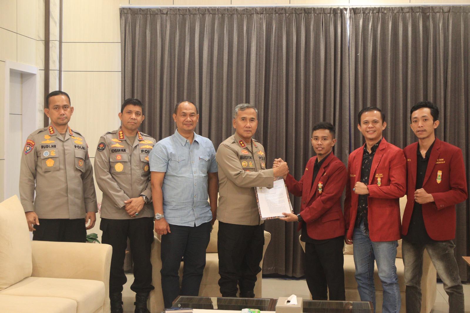 "Mahasiswa merupakan mitra penting bagi kepolisian dalam menyampaikan aspirasi masyarakat sekaligus menjadi agen perubahan yang mampu memberikan kontribusi positif bagi lingkungan sosial," ucap Kapolda Bengkulu Irjen Pol. Mardiyono, S.I.K., M.Si.