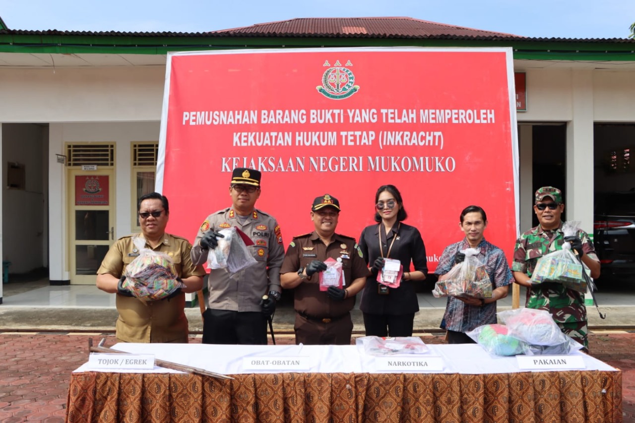 “Tentu ini semua berkat adanya sinergitas penegakan hukum antara Kejaksaan Mukomuko, Polres Mukomuko dan pengadilan negeri, yang mana semua barang bukti ini telah inkracht, ” ujarnya Kajari Mukomuko.