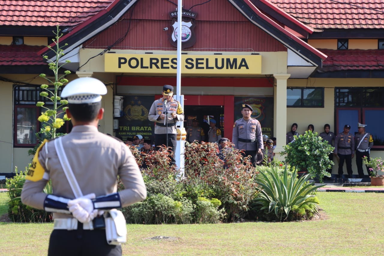 Kegiatan Apel dipimpin oleh Kapolres Seluma AKBP Arif Eko Prastyo S.I.K., M.H., dan dihadiri oleh Sekda Kab. Seluma H. Hadianto, Staff Ahli Pemkab Seluma Hadisusanto, S.Sos, PJU Polres Seluma, Kepala Kantor Kemenag Kab. Seluma H.Heriansyah.S.Ag.Mg, Kabid Perhubungan Kab. Seluma, Kapolsek jajaran Polres Seluma, Danposal Seluma, Kepala Satpol PP Seluma dan Petugas Jasa Raharja Seluma.