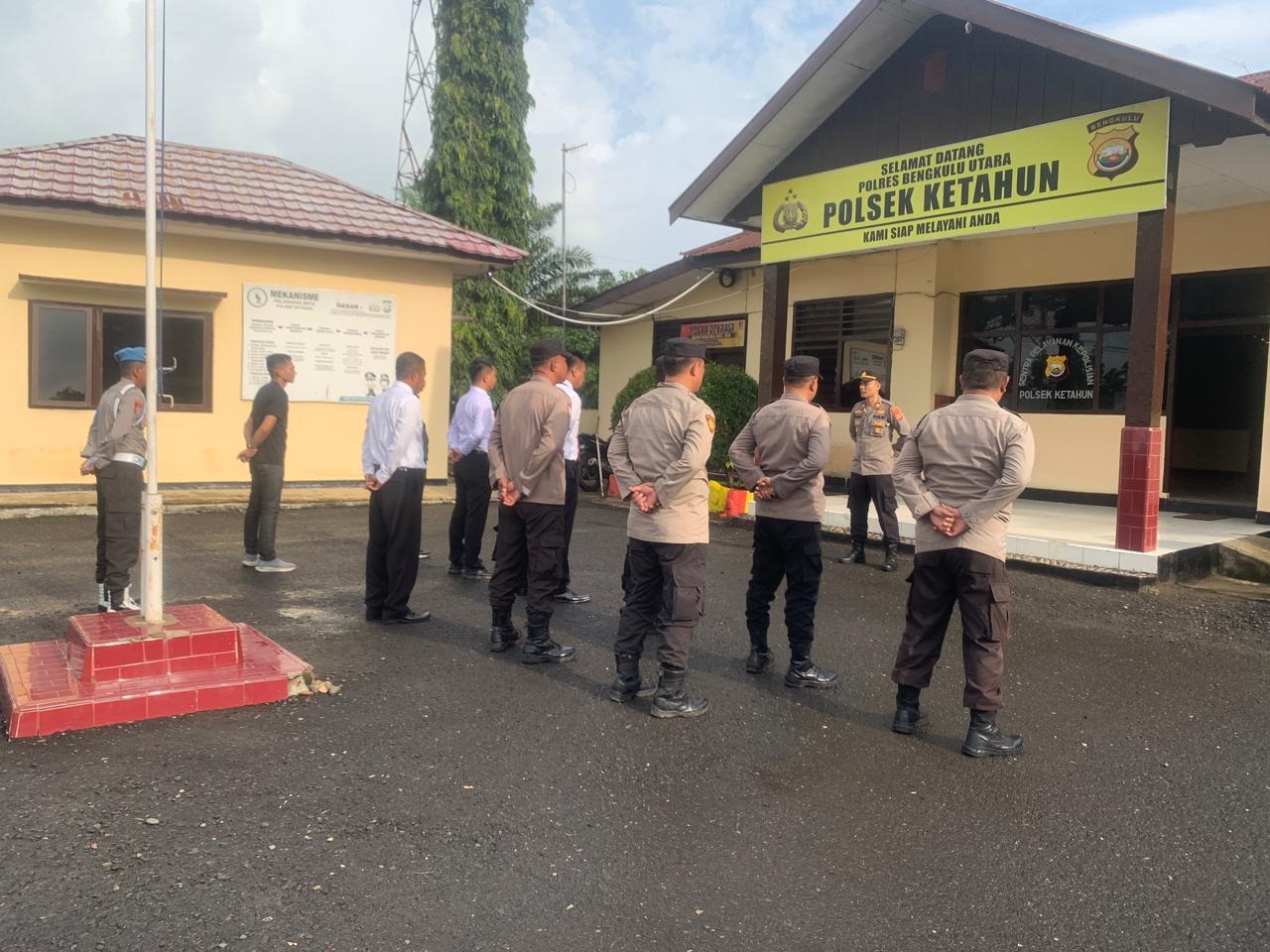 Bengkulu Utara - Bertempat di Mako Polsek Ketahun Kapolsek pimpin apel pagi anggotanya, sebagai bentuk komunikasi dua arah antara pimpinan dan seluruh anggota.
