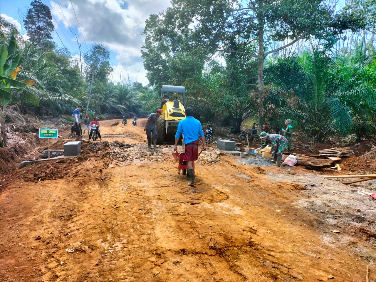 Terlihat dilapangan masyarakat bersama anggota Satgas TMMD terus bekerja sama, yang di bagi berbagi sektor pengerjaan.