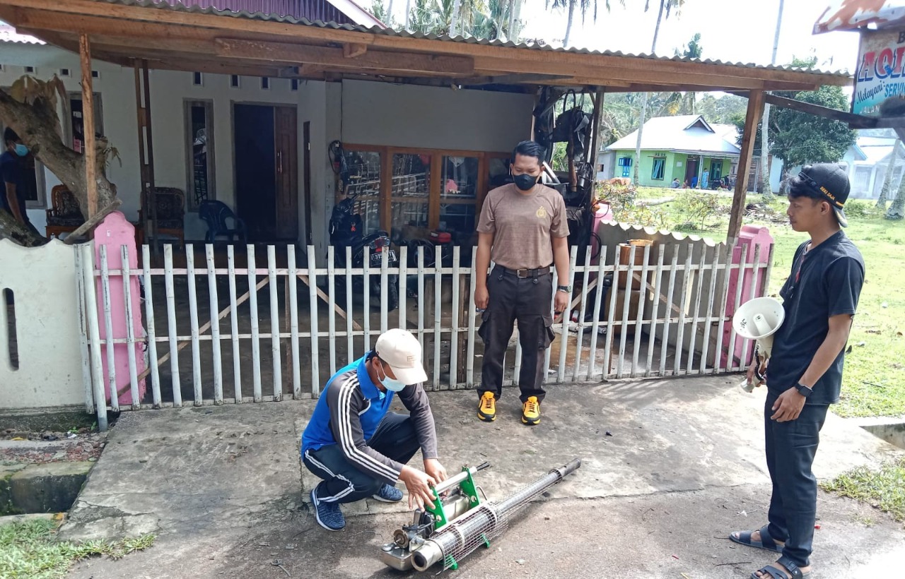 Dutawarta.com, Kaur - Lakukan pendampingan terhadap petugas Dinas Kesehatan dan Puskesmas Kabupaten Kaur yang melakukan kegiatan fogging siang hari kemarin Minggu (25/09/2022), Briptu Mitri Agus Wijaya bersama Jajaran Pemerintah Desa Jembatan Dua Kecamatan Kaur Selatan mengajak Warga untuk kembali mengaktifkan kegiatan gotong royong membersihkan lingkungan.
