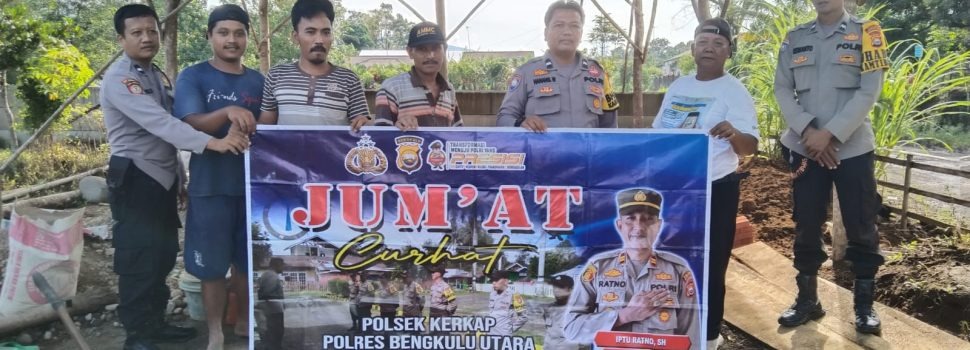 Bengkulu Utara - Bhabinkamtibmas Polsek Kerkap Polres Bengkulu Utara Polda Bengkulu mendengarkan aspirasi masyarakat melalui program Jumat Curhat di halaman rumah warga Desa Serumbung, Kecamatan Kerkap, Kabupaten Bengkulu Utara, Jumat (24/3/23).