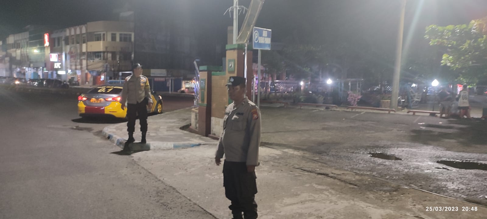 Bengkulu - Polsek Teluk Segara Polresta Bengkulu Polda Bengkulu, mengerahkan personelnya untuk melakukan penjagaan di Masjid Jamik Jalan Jenderal Sudirman Kelurahan Pintu Batu Kecamatan Teluk Segara Kota Bengkulu, saat pelaksanaan ibadah Salat Tarawih, Sabtu (25/3/2023) malam.