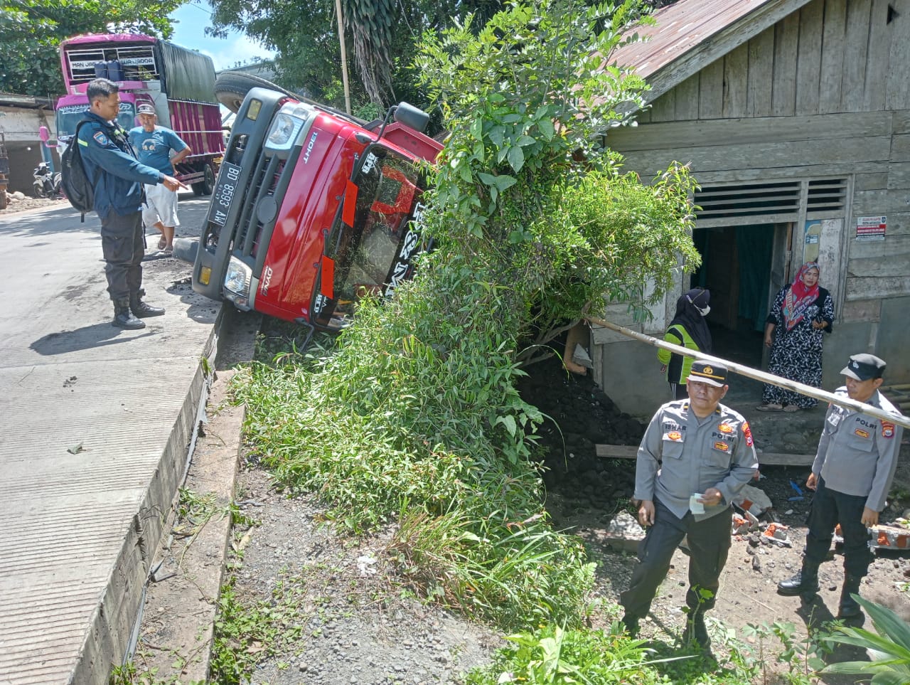 PLH Kapolsek Batiknau Ipda Izhar mengatakan bahwa saya bersama Personil merespon cepat laporan warga adanya kecelakaan lalu lintas dump Truk yang menimpa rumah Warga di desa Samban Jaya Kecamatan Batiknau guna memastikan kronologis dan apakah ada korban jiwa dalam peristiwa ini.