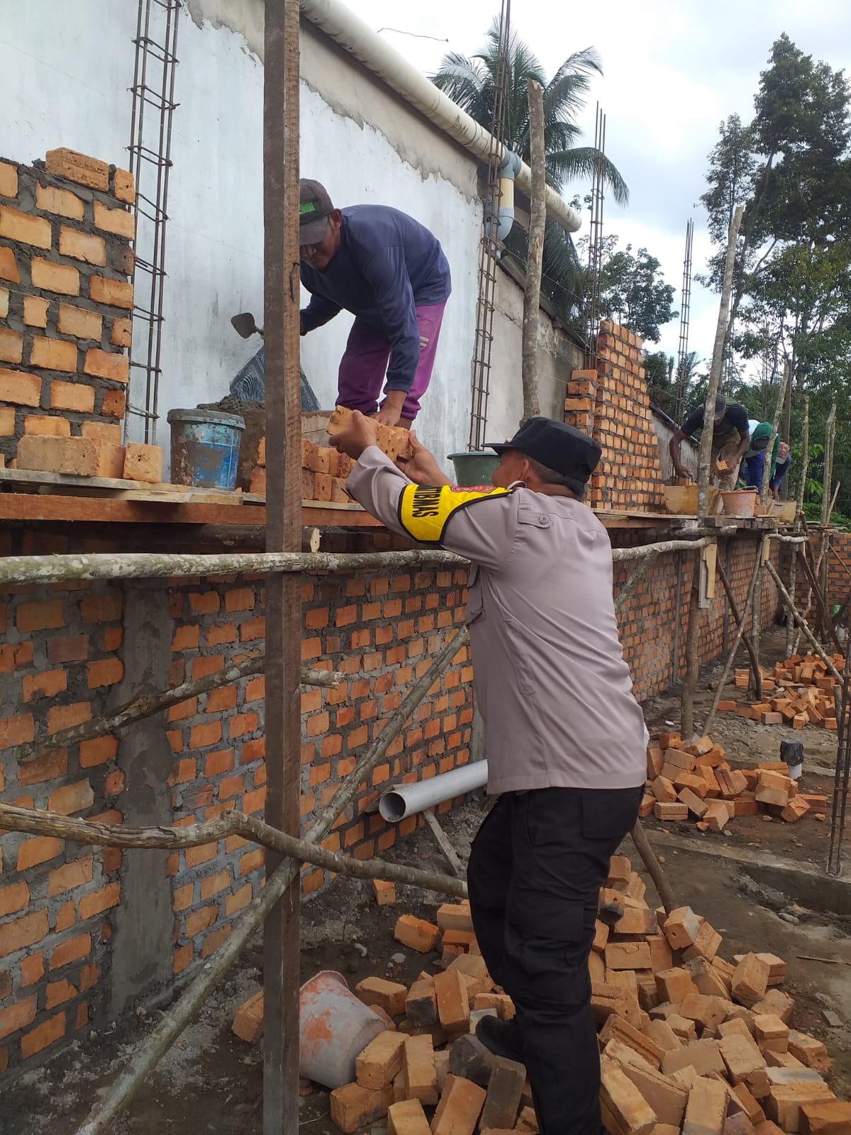 Rejang Lebong – Melihat salah seorang warga di desa binaan Desa Talang Belitar Kecamatan Sindang Dataran Kabupaten Rejang Lebong yang sedang bekerja merehab bangunan rumah, Bripka Jokopada Kamis (16/02/2023) siang langsung berupaya memberikan bantuan.