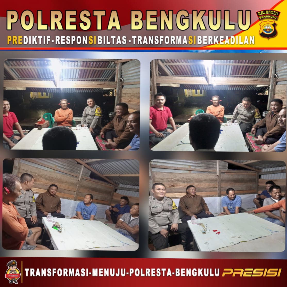 Bengkulu - Kapolresta Bengkulu Polda Bengkulu Kombes Pol Aris Sulistyono S.H, M.H, melalui Kapolsek Muara Bangkahulu dan Bhabinkamtibmas Pematang Gubernur Aipda Al Hady Firmansyah, melaksanakan giat Sambang Kamtibmas dengan warga Kelurahan Pematang Gubernur Kecamatan Muara Bangkahulu Kota Bengkulu, Rabu (05/04/2023).