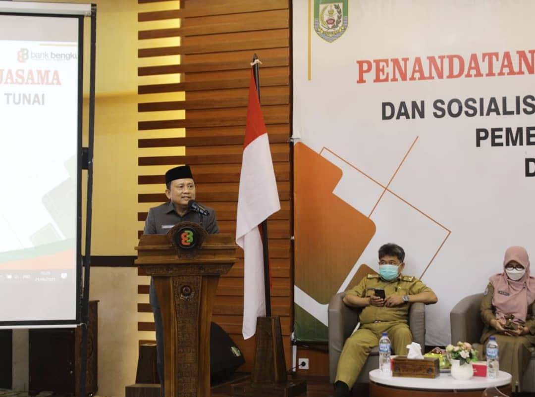 Pada kesempatan itu dilakukan penandatanganan kerjasama antara Pemprov Bengkulu yang diwakili oleh Kepala BPKAD Provinsi Noni Yuliesty dengan Kepala Kantor Cabang Utama Bank Bengkulu Iswahyudi terkait Kerjasama Aplikasi OPD Non Tunai.