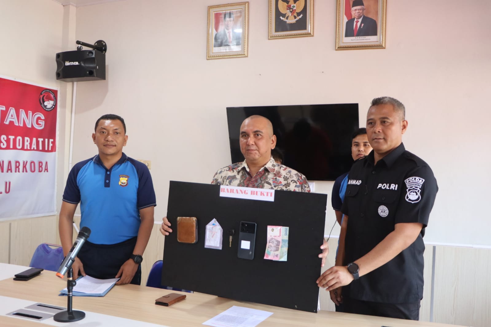 Saat ditangkap, petugas mendapati 4 paket Narkoba jenis Sabu. Selain menangkap tersangka, petugas juga mengamankan barang bukti 1 unit sepeda motor, 1 unit Hp, dan uang tunai Rp 150 ribu.
