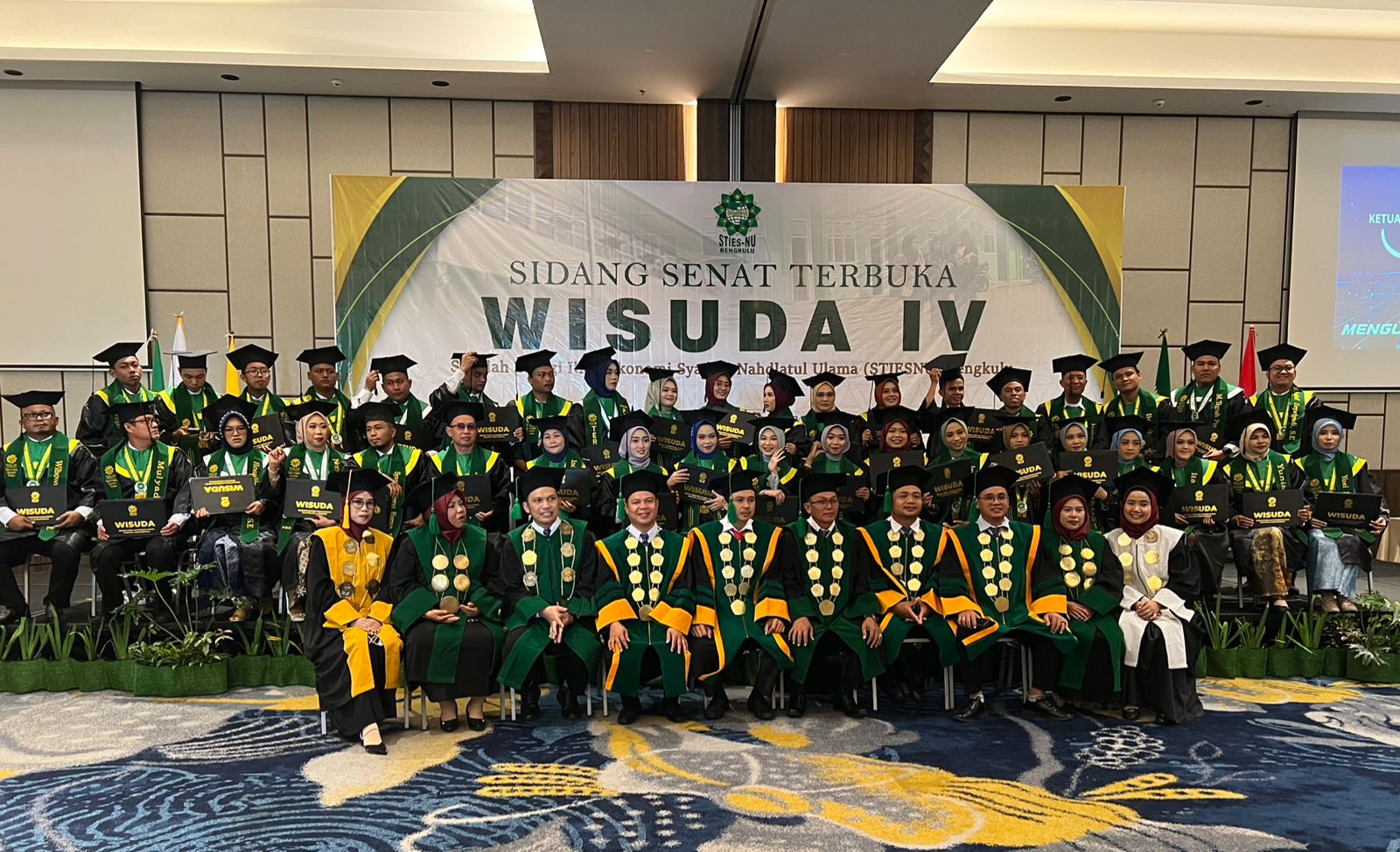 Bengkulu - Sekolah Tinggi Ilmu Ekonomi Syariah Nahdlatul Ulama (STIESNU) Bengkulu mengadakan rapat senat terbuka dalam rangka wisuda angkatan ke-IV di Mercure Hotel Bengkulu, Kamis (26/12/2024). Dalam wisuda ini, 38 lulusan resmi menyandang Sarjana Ekonomi (SE).