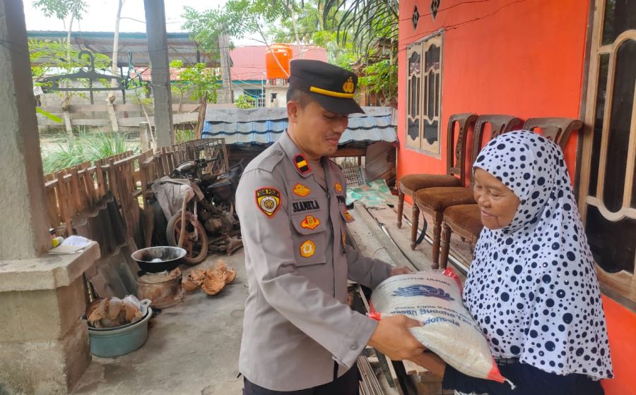 Polsek Kaur Utara Berbagi Sembako ke Warga Tidak Mampu