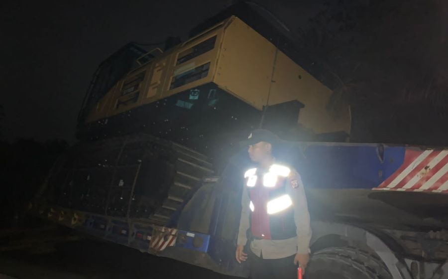 Quick Respon Polisi Datangi TKP Tronton Muatan Alat Berat Masuk Siring