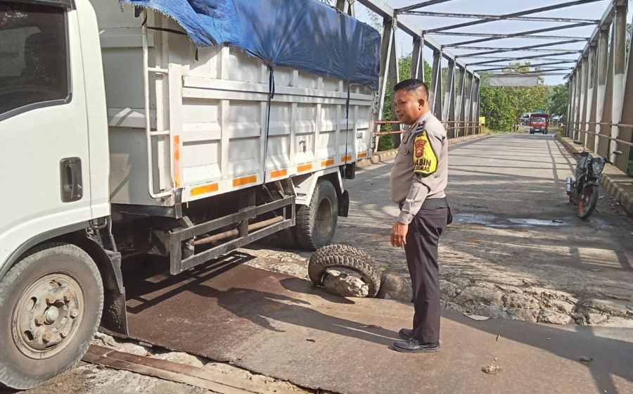 Bhabinkamtibmas Polsek Batiknau Cek Kondisi Jembatan