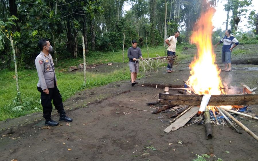 Polsek Curup Bongkar dan Bakar Tempat Judi Sabung Ayam