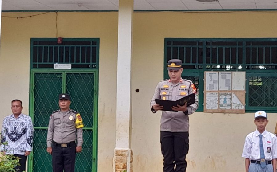 Sambang, Bhabinkamtibmas Lebong Selatan Ikuti Upacara Bendara di SDN 65