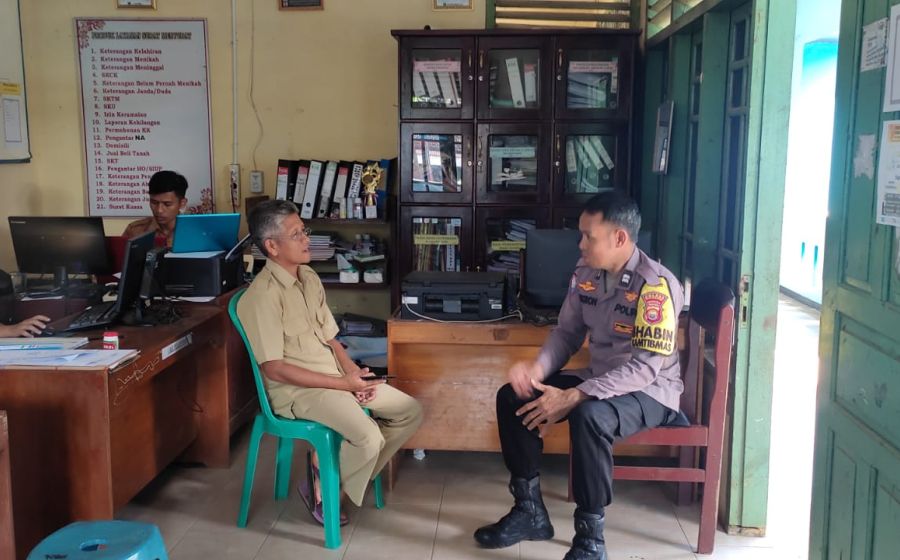 Ini Pesan Bhabinkamtibmas Polsek Padang Jaya Saat Sambangi Kantor Desa