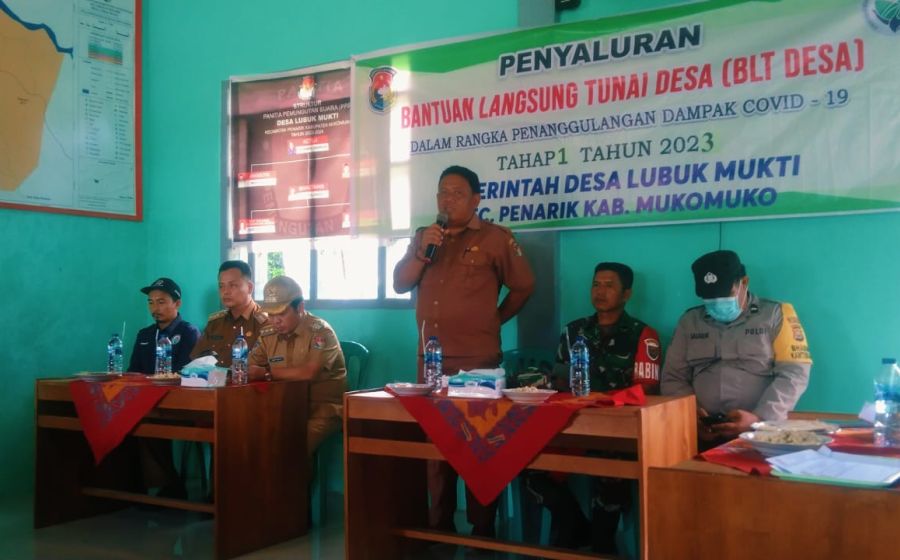 Polsek Penarik Raya, Hadiri Kegiatan Pembagian BLT-DD di Desa Lubuk Mukti