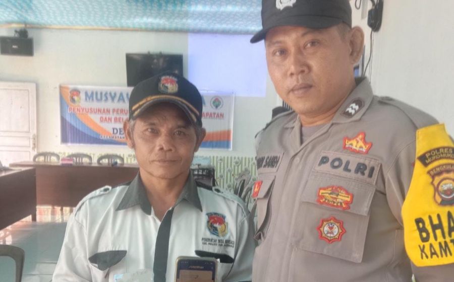 Hadiri Pertemuan Bersama Perangkat Desa dan Warga, Bhabinkamtibmas Sampaikan Pesan Jaga Harkamtibmas