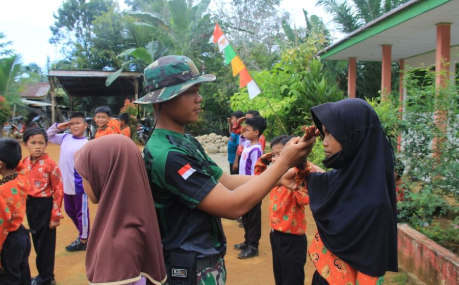 Satgas TMMD 114 Kodim 0423/BU latih PBB siswa SDN 114 Bengkulu Utara